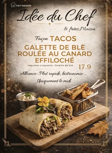 Nous attachons une grande importance à la fraîcheur de nos ingrédients et à l’exigence de notre savoir-faire, afin de vous proposer une carte variée et gourmande. Que vous soyez amateur de plats traditionnels revisités ou de douceurs sucrées, notre cuisine saura vous combler. Venez savourer des mets préparés avec passion, dans une ambiance conviviale et détendue.