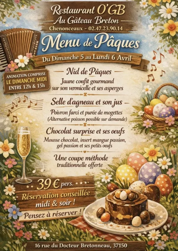 Notre équipe se tient à votre disposition pour répondre à toutes vos demandes et vous garantir une expérience culinaire mémorable. Que vous soyez de passage à Chenonceaux pour visiter le célèbre château ou que vous cherchiez un lieu chaleureux pour vous restaurer, AU GATEAU BRETON est l’adresse idéale. Venez découvrir notre cuisine savoureuse et laissez-vous séduire par l’ambiance unique de notre établissement !